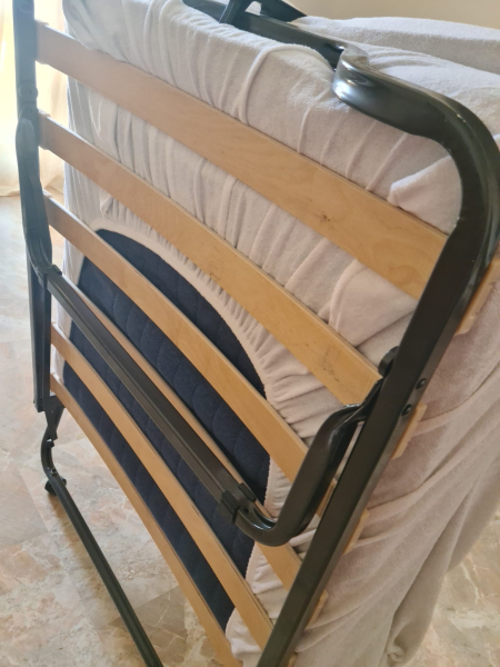 una piazza con doghe in legno e materasso incluso. Dotata di 4 ruote per essere spostata facilmente. In perfette condizioni, praticamente nuova, vendo causa inutilizzo E. 50. Zona Magione. Tel. al