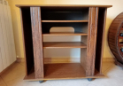 due ante, lato due ripiani in legno, in castagno leggermente anticato, lungo cm 130 prof 62 h 107, al suo interno ha frigo da incasso Ariston green, cerniera a destra, 82 x 52 x prof 45 vendo E. 500. No perditempo. Tel. ore serali al